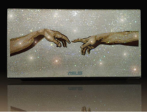 Ноутбук украшен 40 тысячами кристаллами Swarovski, однако, не их сияние стало главной отличительной особенностью данной модели. На задней панели компьютера изображен фрагмент знаменитой фрески «Сотворение Адама» гениального художника Микеланджело, выполненный из кристаллов. Для создания этого дизайна отдельные кристаллы тщательно подбирались вручную. Ноутбук также оснащен колонками от Bang & Olufsen, которые обеспечивают идеальное воспроизведение.