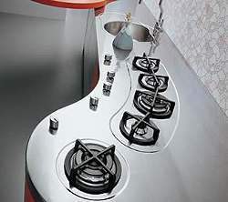 А вот микроволновая печь, кухонный комбайн, пароварка, хлебопечка, кофемашина и прочие бытовые приборы становятся не только функциональными агрегатами, но и дизайнерскими акцентами на службе у чистоты стиля. Небольшой телевизор на подвесном кронштейне тоже придется кстати, как и удобные электронные часы в хромированном корпусе, сверхмощная вытяжка, подсветка шкафчиков, позволяющая зонировать пространство.