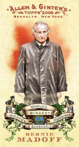 В коллекцию Topps 2009 Allen & Ginter войдут карты с изображениями 260 игроков в бейсбол и каты с изображениями исторических персонажей и «чемпионов мира» в областях, далеких от бейсбола. Карточка с Мэдоффом войдет в серию «величайшие обманщики и мошенники» наряду с карточками, посвященными итальянскому создателю финансовой пирамиды Чарльзу Понци, «сбежавшей невесте» Дженнифер Уилбэнкс и компании Энрон, крах которой стал самым крупным банкротством в истории США.