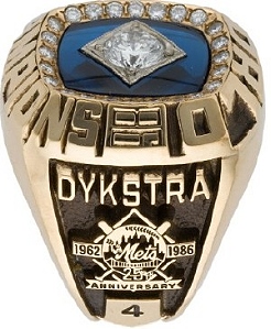 В числе наиболее интересных лотов аукциона - золотое кольцо с бриллиантом чемпионата World Series 1986 года, копия трофейного кубка, «чемпионские» кольца бейсбольных турниров All-Star Game 1990, 1994 и1995 годов, мяч, принесший команде Дикстра победу в трех играх Национальной лиги в 1986 году.