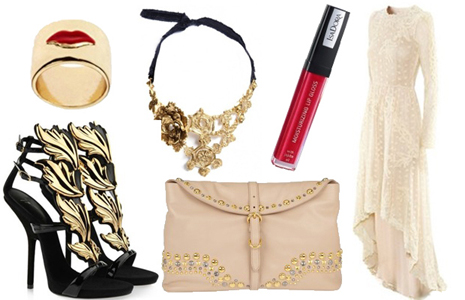 Вещь бежевого цвета должна находиться как можно дальше от вашего лица. Часто бежевый буквально сливается с тоном кожи, при этом полностью теряется шарм и изюминка вещи, даже если она и была, а сама модница превращается в «человека без лица». Бежевый гораздо выигрышней смотрится в тканях с легким переливчатым блеском. Мягкие блики оживляют ткань, освежают цвет лица и при этом выглядят довольно нарядно. Чтобы не потеряться в бежевом, образ можно дополнить насыщенным цветовым оттенком и яркой красной помадой.
