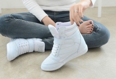 Ни для кого не сюрприз, что женщины скорее отдают предпочтение сникерсам, нежели обуви на каблуках, от которой ноги сильно устают. Сникерсы отличаются элегантностью и привлекательностью. Танкетка делает ноги более стройными, а саму девушку визуально выше. Кроссовки на танкетке можно сочетать практически с любым типом одежды.